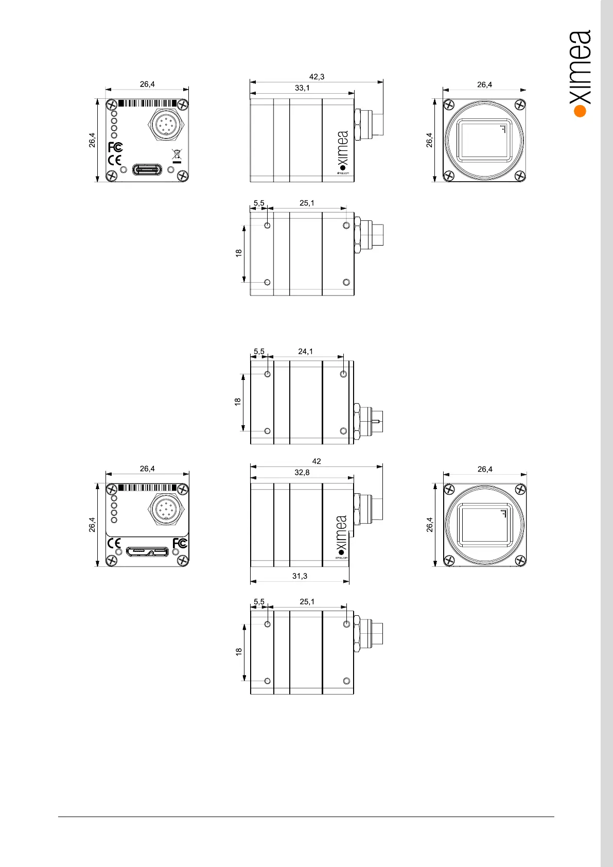 3.5.5.4. Dimensional drawings MC124xG-SY-UB (C-mount [with C mount module B])