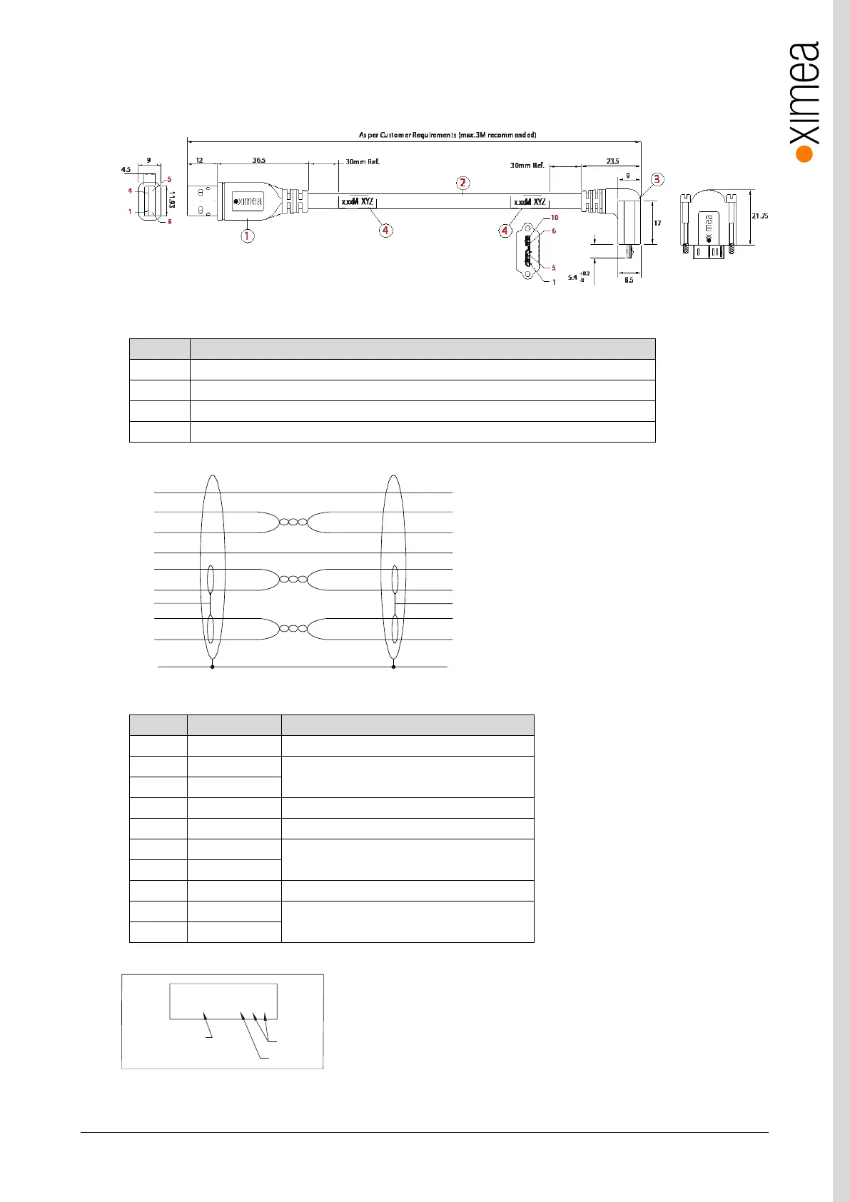 table 3-43, USB3 cable angled, components
