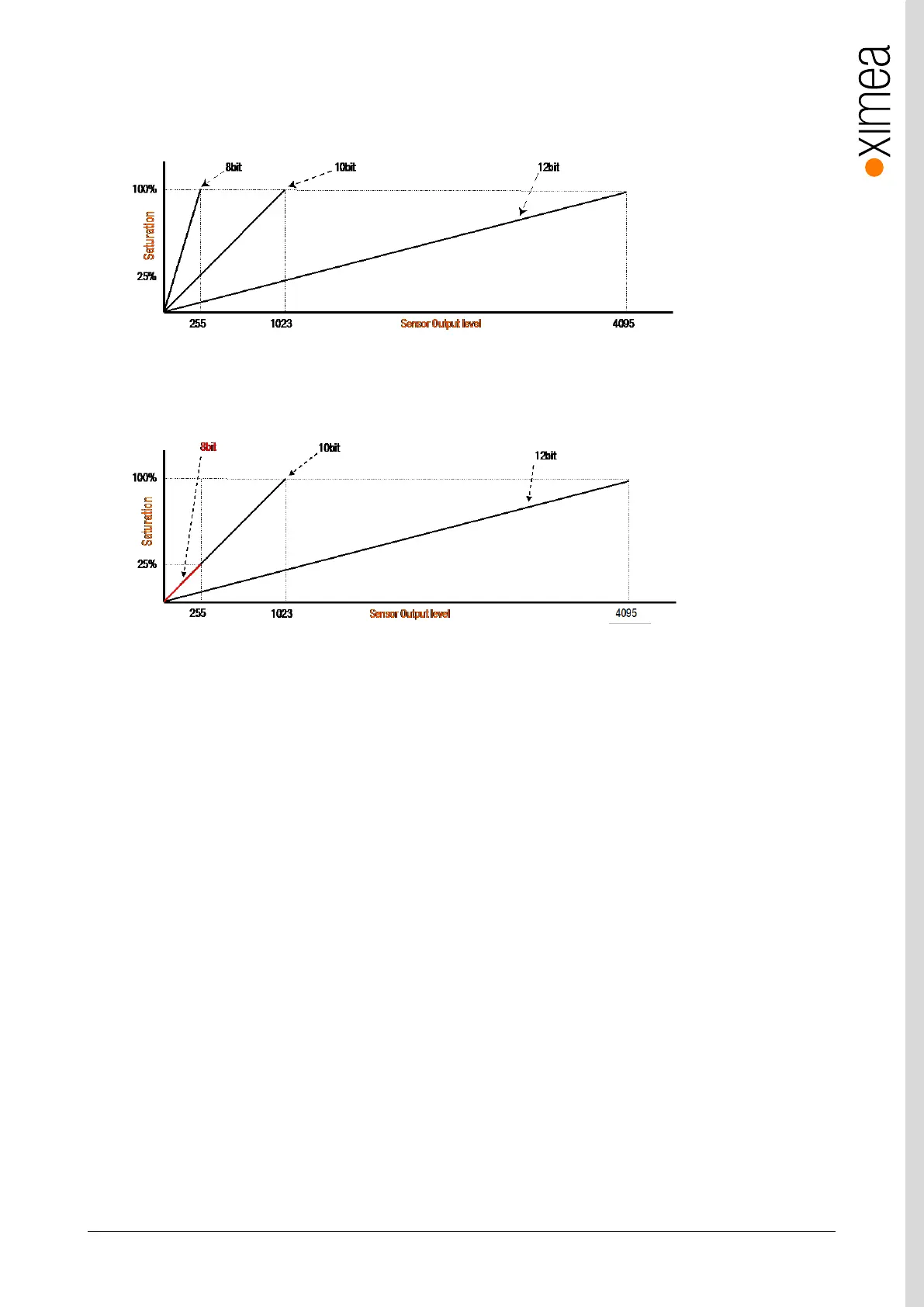 which features same conversion gain as 10bit mode using only ¼ of the saturation. This lead to four times brighter images