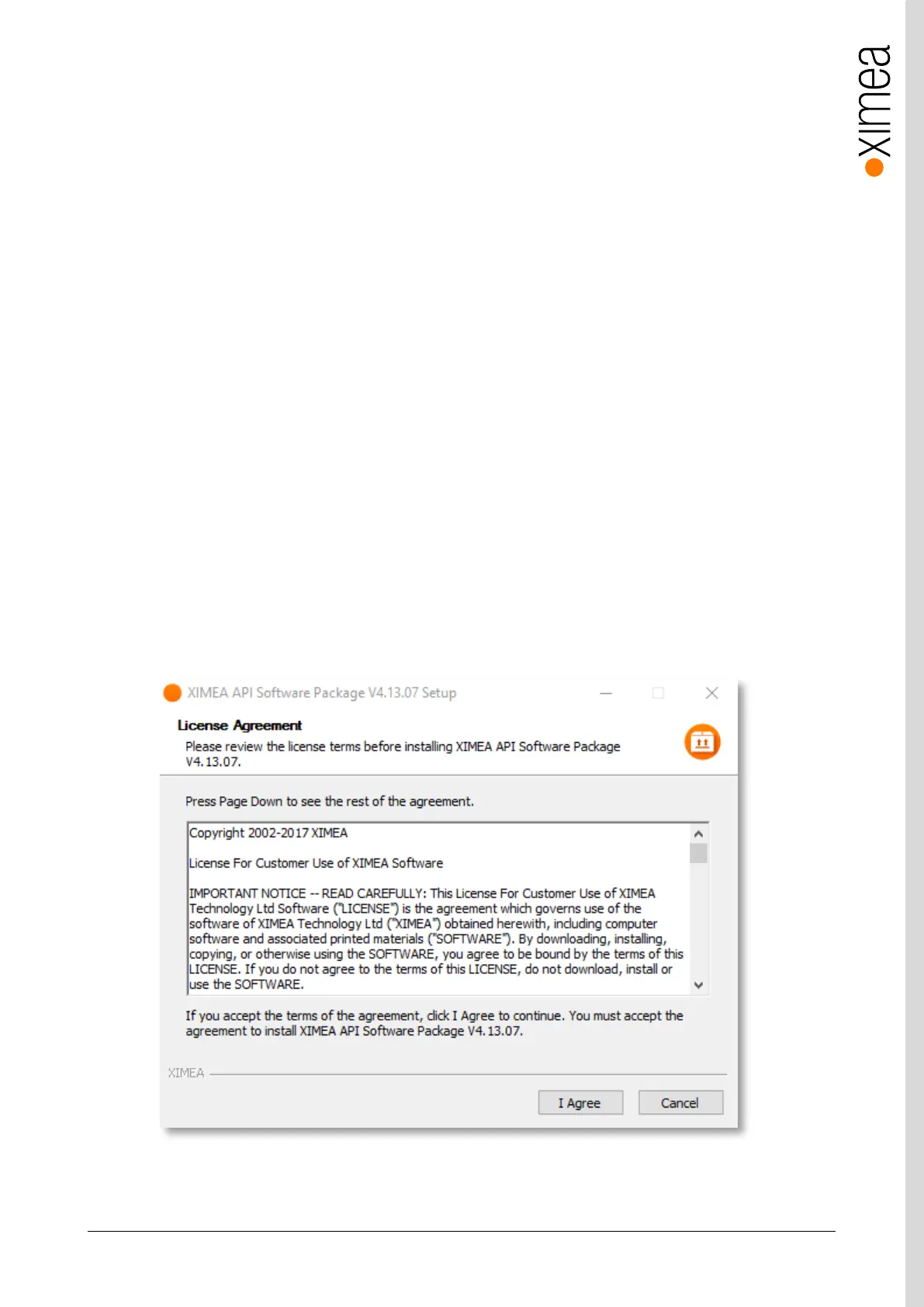 • Download and execute the XIMEA API Software Package installer (EXE-file, approximate size 100 MB):