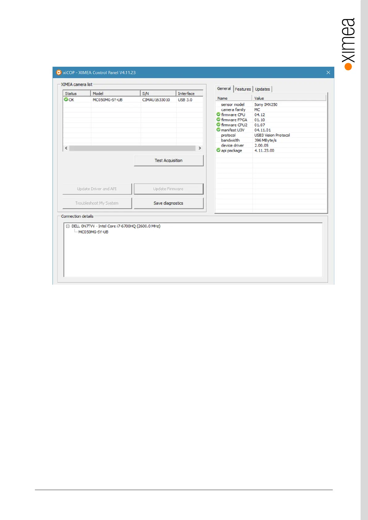 The XIMEA Control Panel (xiCOP), is a diagnostics and management tool for all XIMEA cameras.