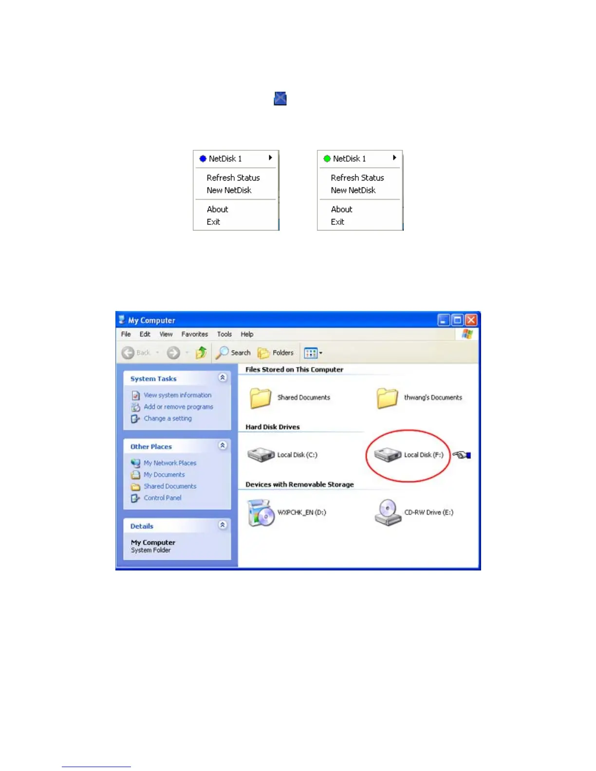 NetDisk is located in My Computer as a local drive. Drive letter and NetDisk name may vary among pc.