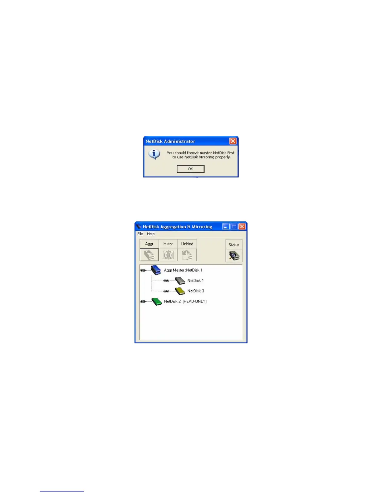 Aggregation: The bound NetDisk is indicated by the word Aggr Master: NetDisk 1. The NetDisk