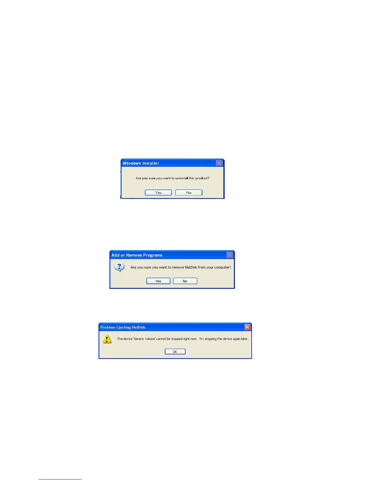 Before you can uninstall a NetDisk, you must close all applications using the NetDisk. NetDisk Administrator,