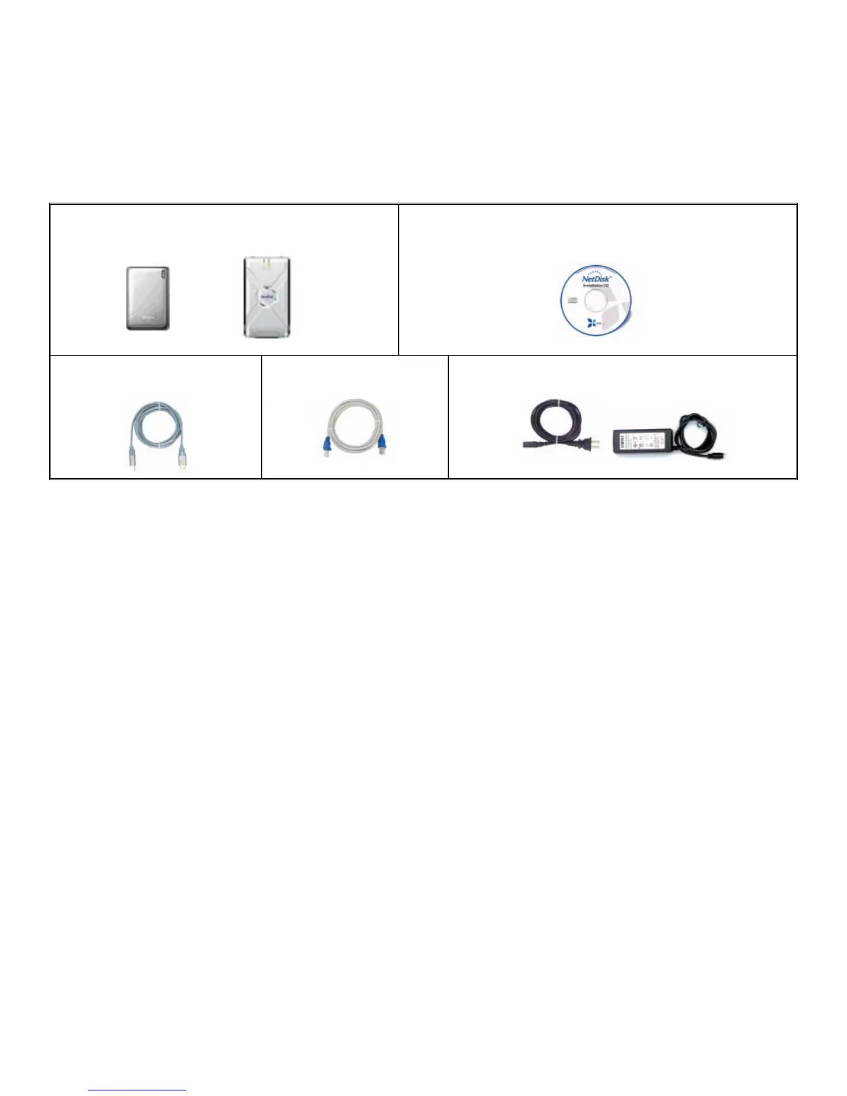 The following items are included in the NetDisk / NetDisk Mini package:
