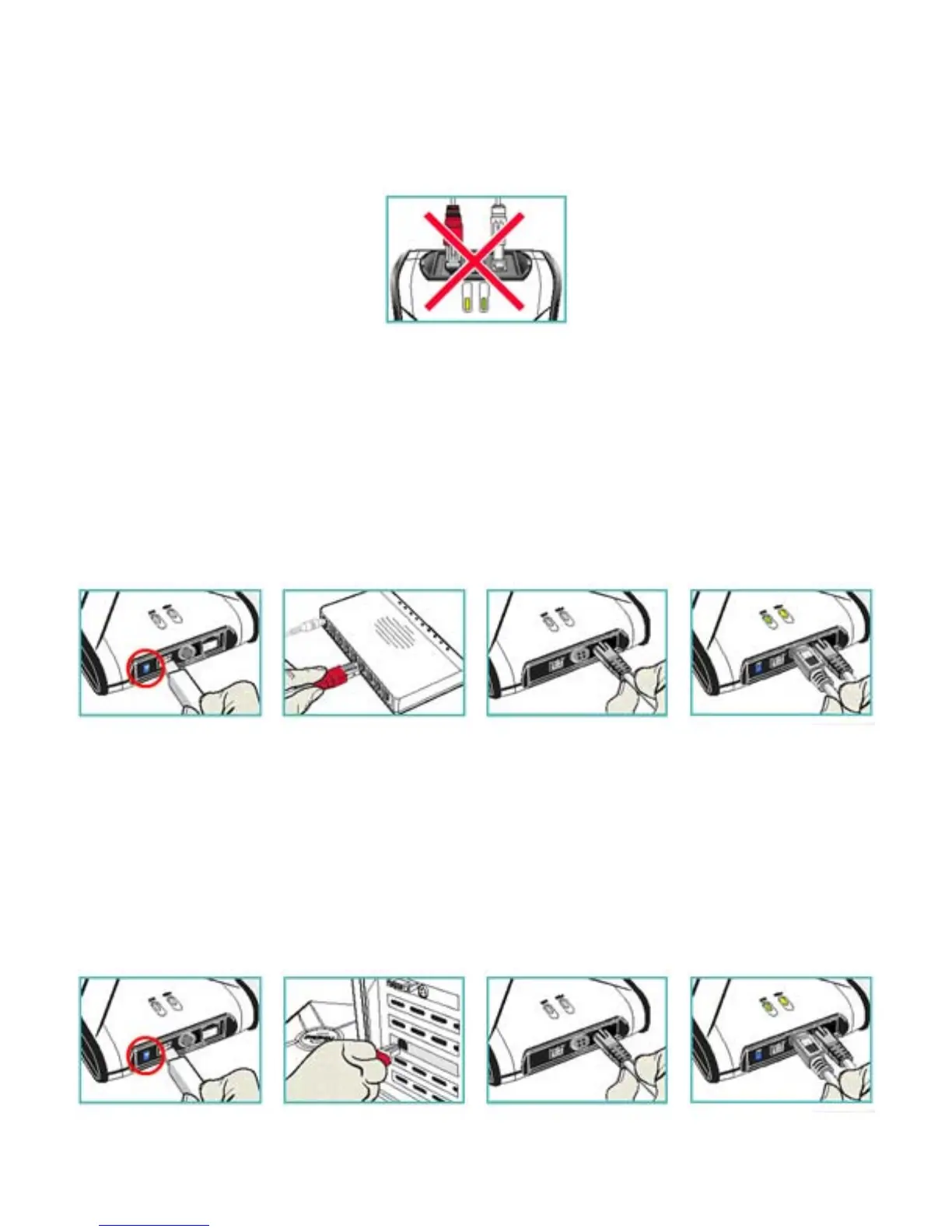 (2, 3) Connect NetDisk to a switch (100 Base-T) with included Ethernet cable (straight through).