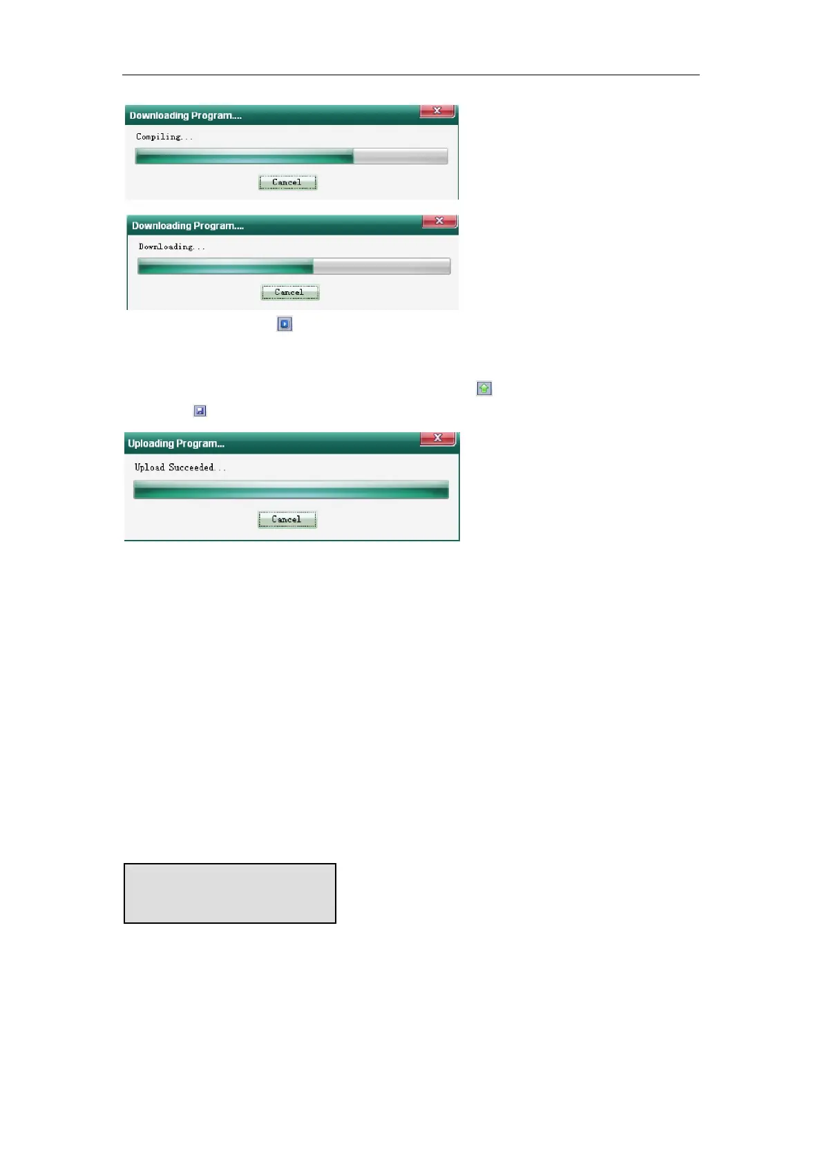 If you want to check the PLC program in XP/XMP, click to upload the program to the PC.