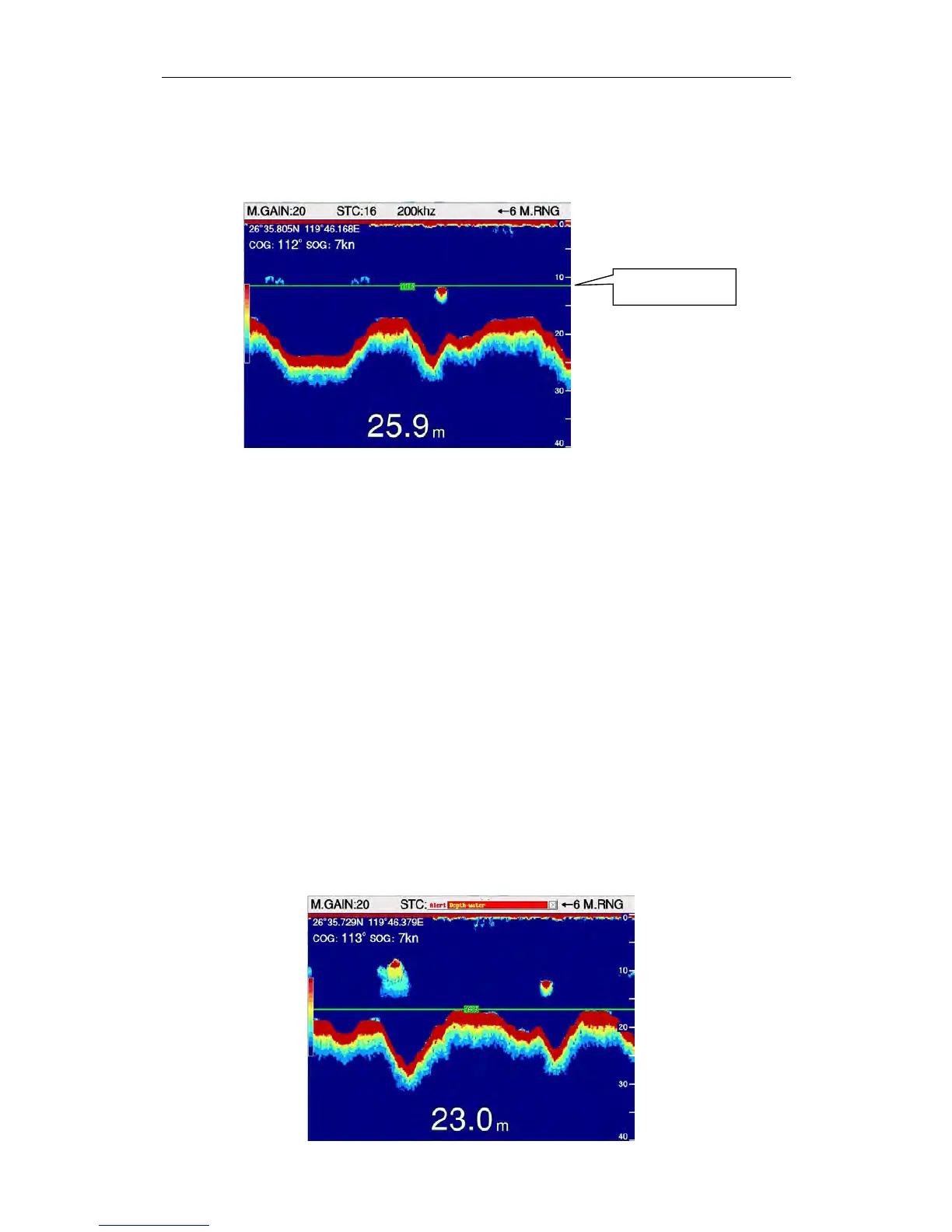 Systemwillbealarmwhendepthalarmvalueistriggered. “Depth-water “ or “Low-water “ will