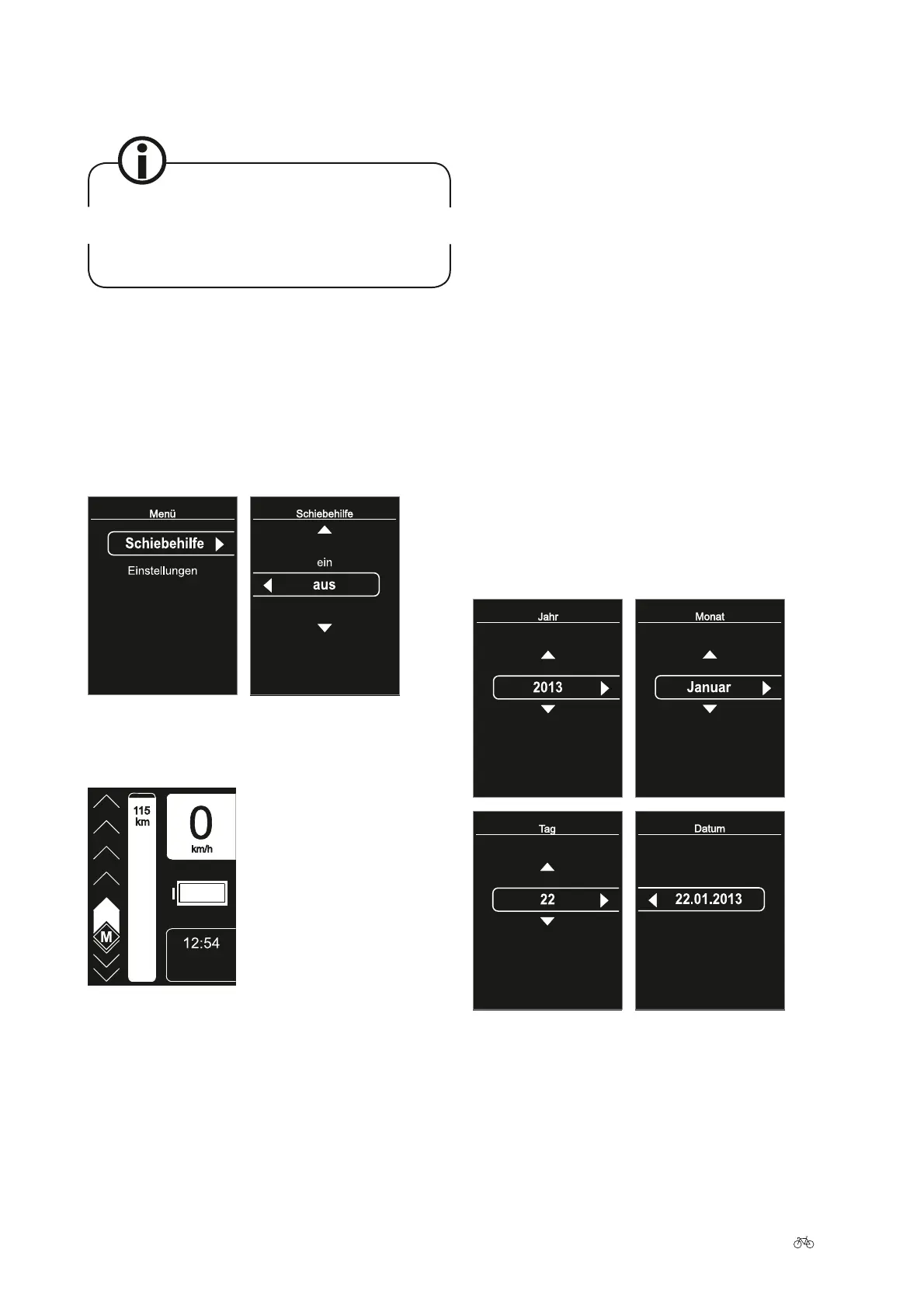 Sie den Menüunterpunkt „Schiebehilfe“ und drücken Sie