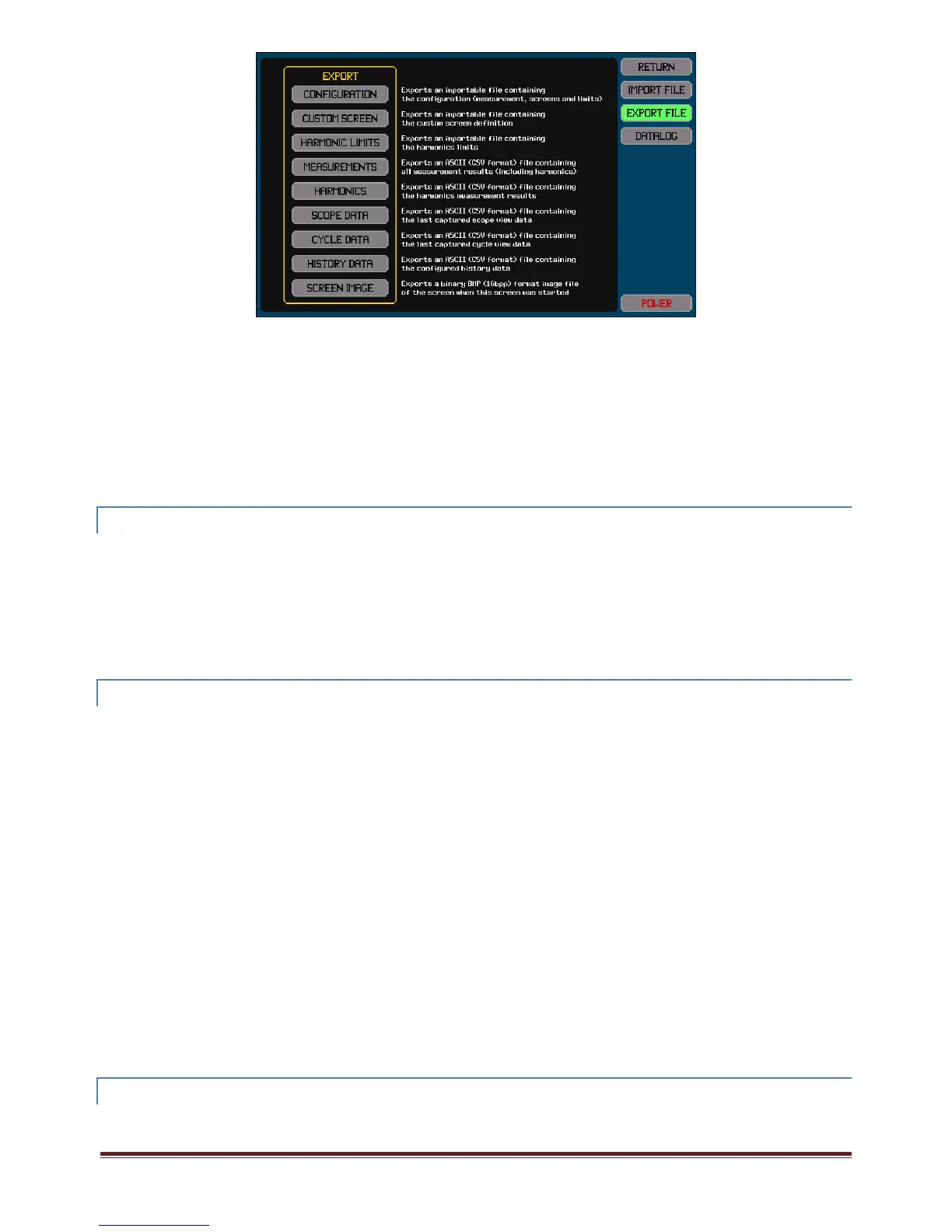 Nexttoeachbuttonaredescriptionsofthefilewhichwillbeexportedtothedriveifthecorrespondingbuttonispressed.