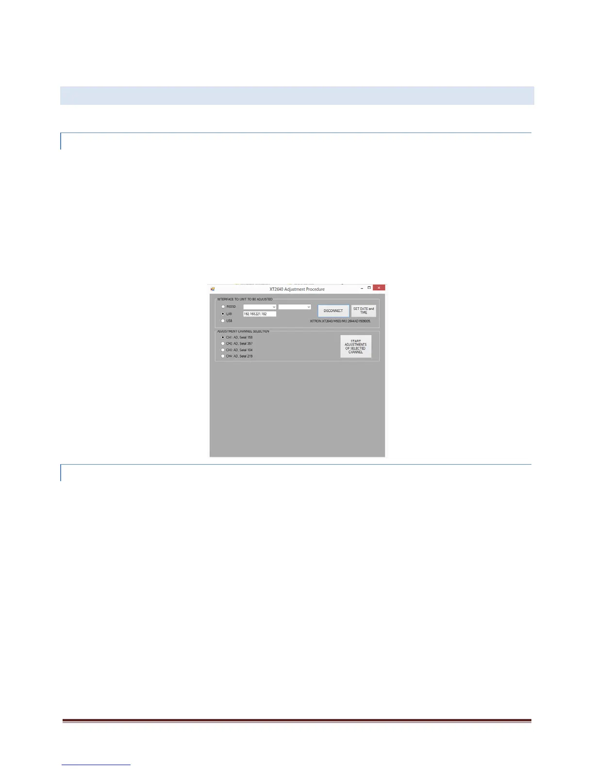 Eachchannelisadjustedseparately,sotheprocedurebelowshouldbeperformedforeachchannelinstalledintheXT2640.Aftera
