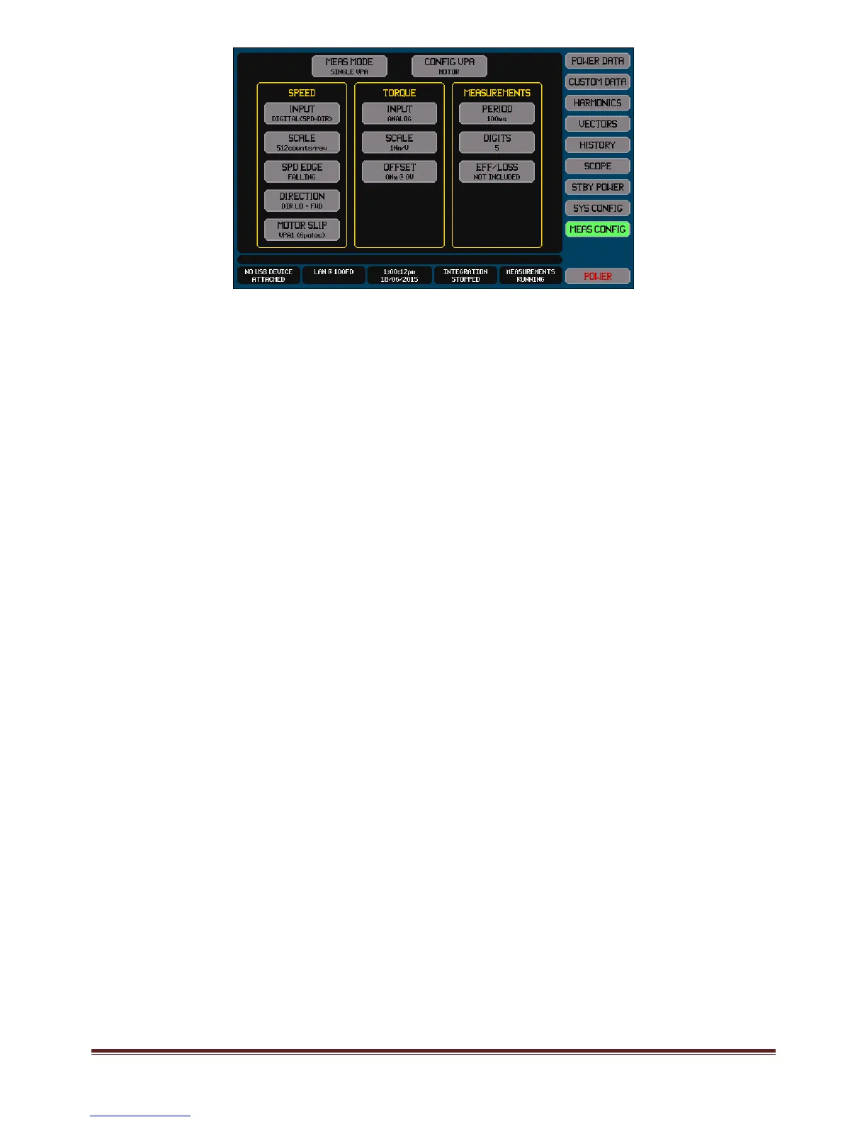 ThemeasurementofmechanicaltorqueisconfiguredusingthebuttonsintheTORQUEareashownonthescreen.