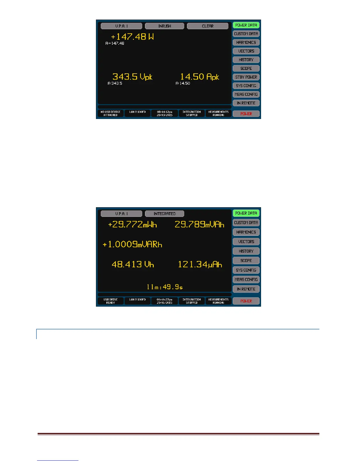 Thisscreenshowstheintegratedmeasured(orintegratedaveragemeasured)meanVolts,meanAmps,totalWatts,totalVA,total