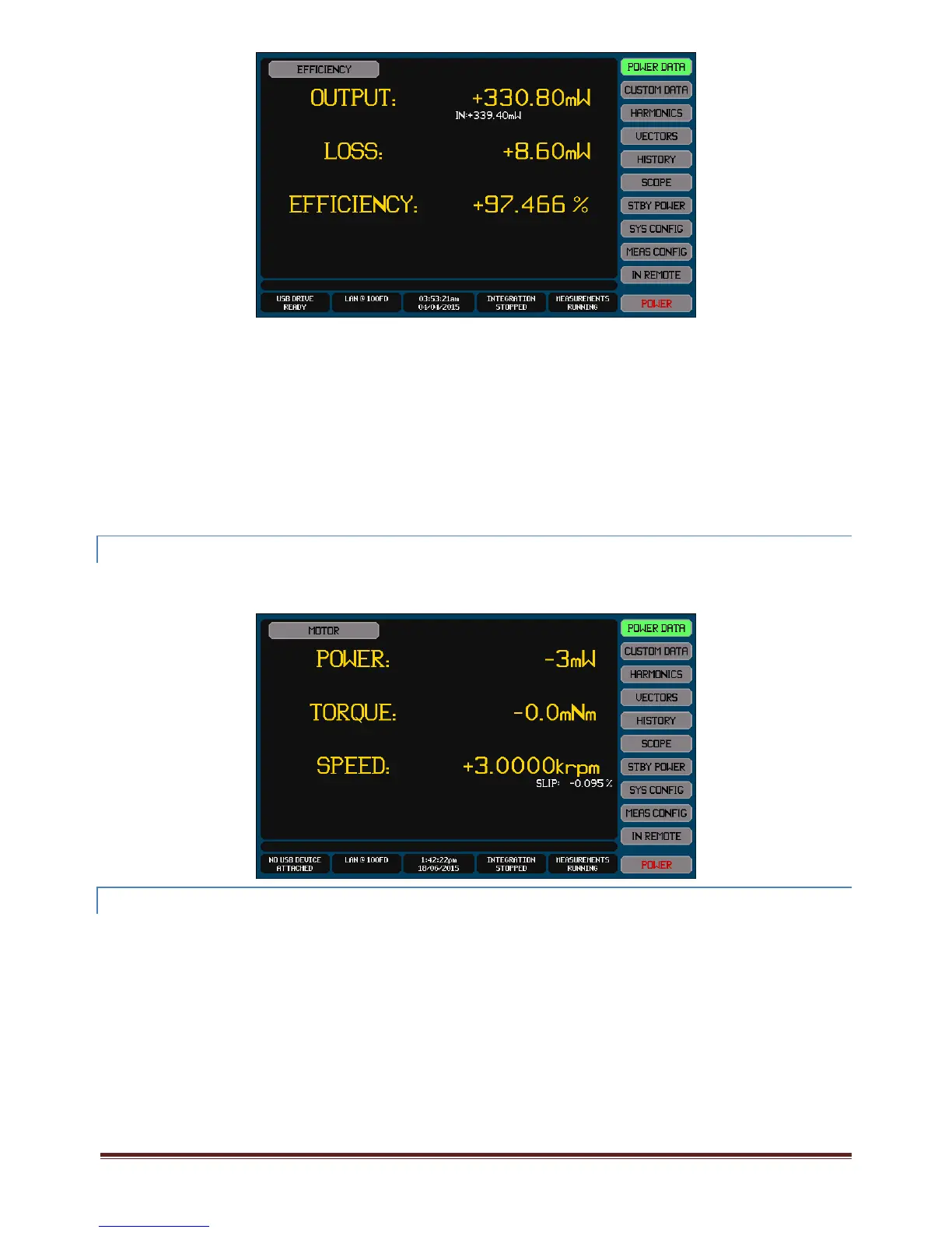 Theresultsformechanicalpower,torque,speedandmotorslipcanbeselectedonthePOWERDATAscreenbypressingtheSource