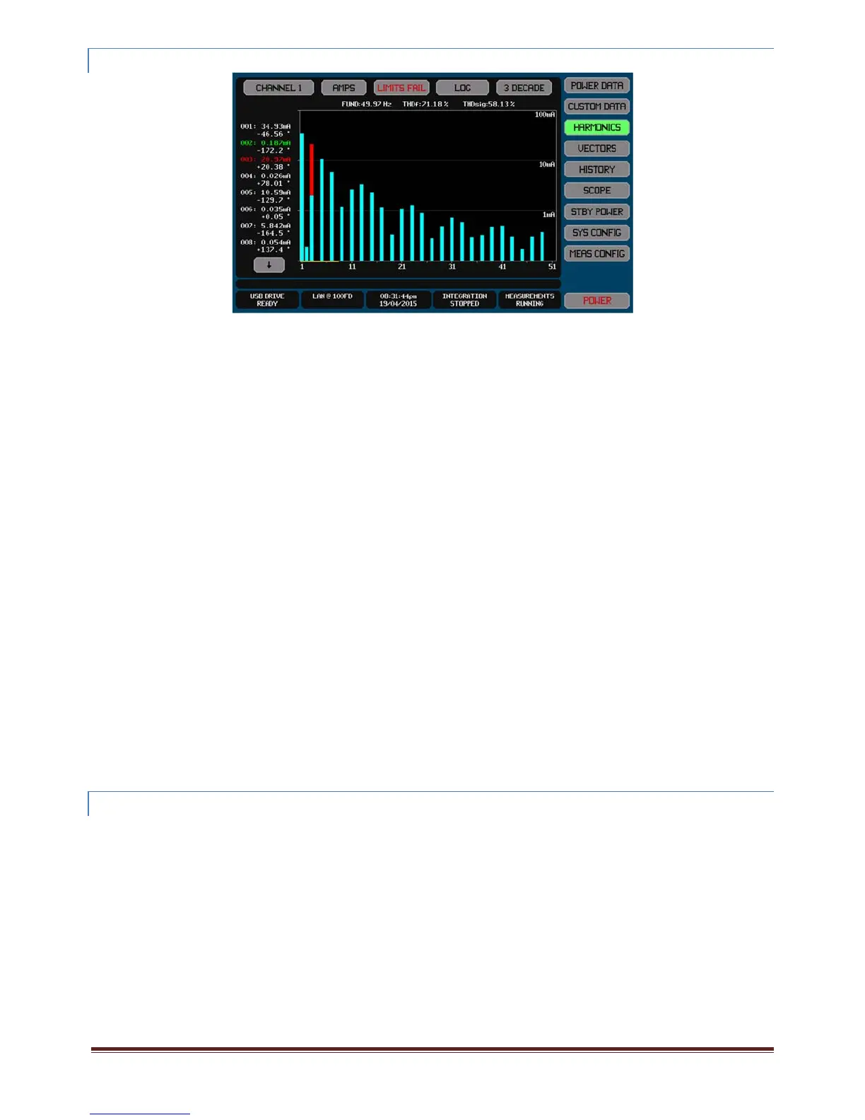 Harmonicsmeasurementscanbeexportedtoa.CSVformattextualfileonanexternalUSBdriveattachedtothefrontpanelUSBport.