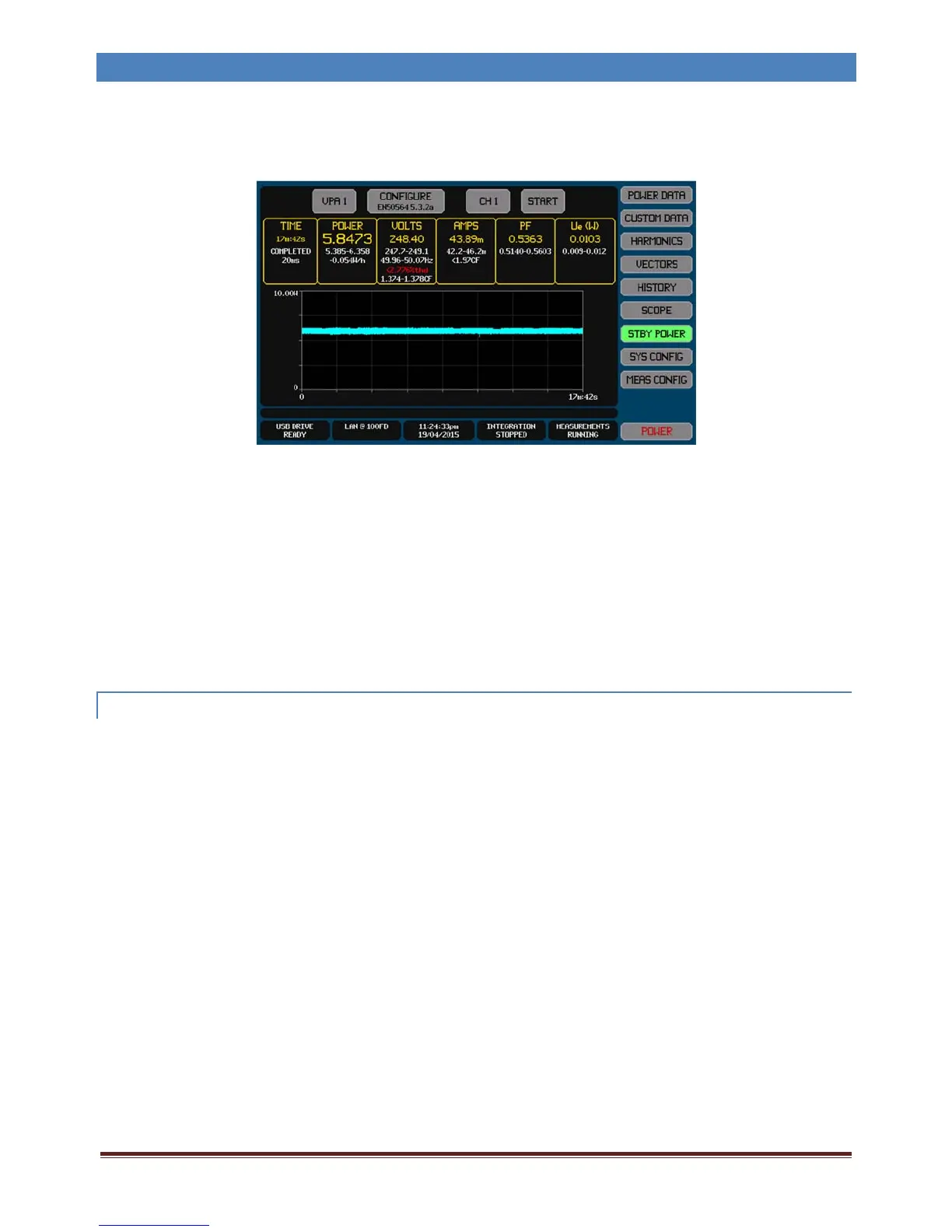 TheSTBYPOWERScreengivesyoutheabilitytoconfigure,start/stop,andviewtheresultsoflowpowermeasurementsin