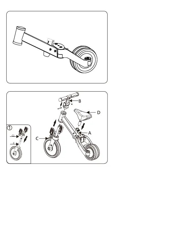 del asiento de la estructura principal (A). Inserte el asiento (D) en el tubo del asiento