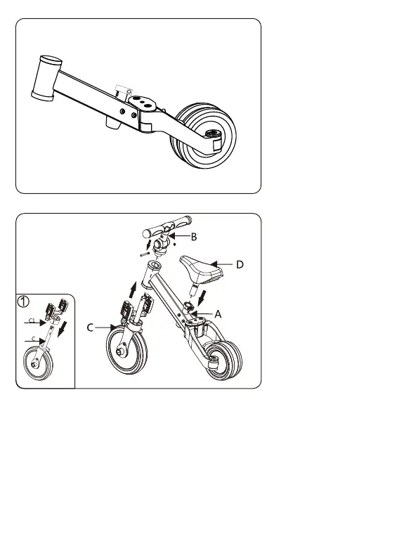 mainframe (A). Insert the saddle (D) into the seat tube of the mainframe (A) along the