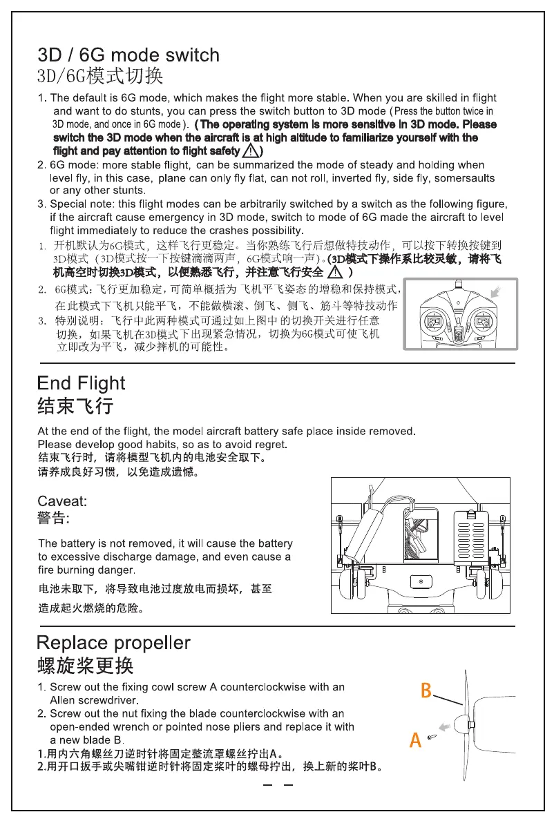 XK A300 - Flight Mode Selection; 3 D;6 G Mode Switching; End Flight Procedures; Battery Removal and Safety