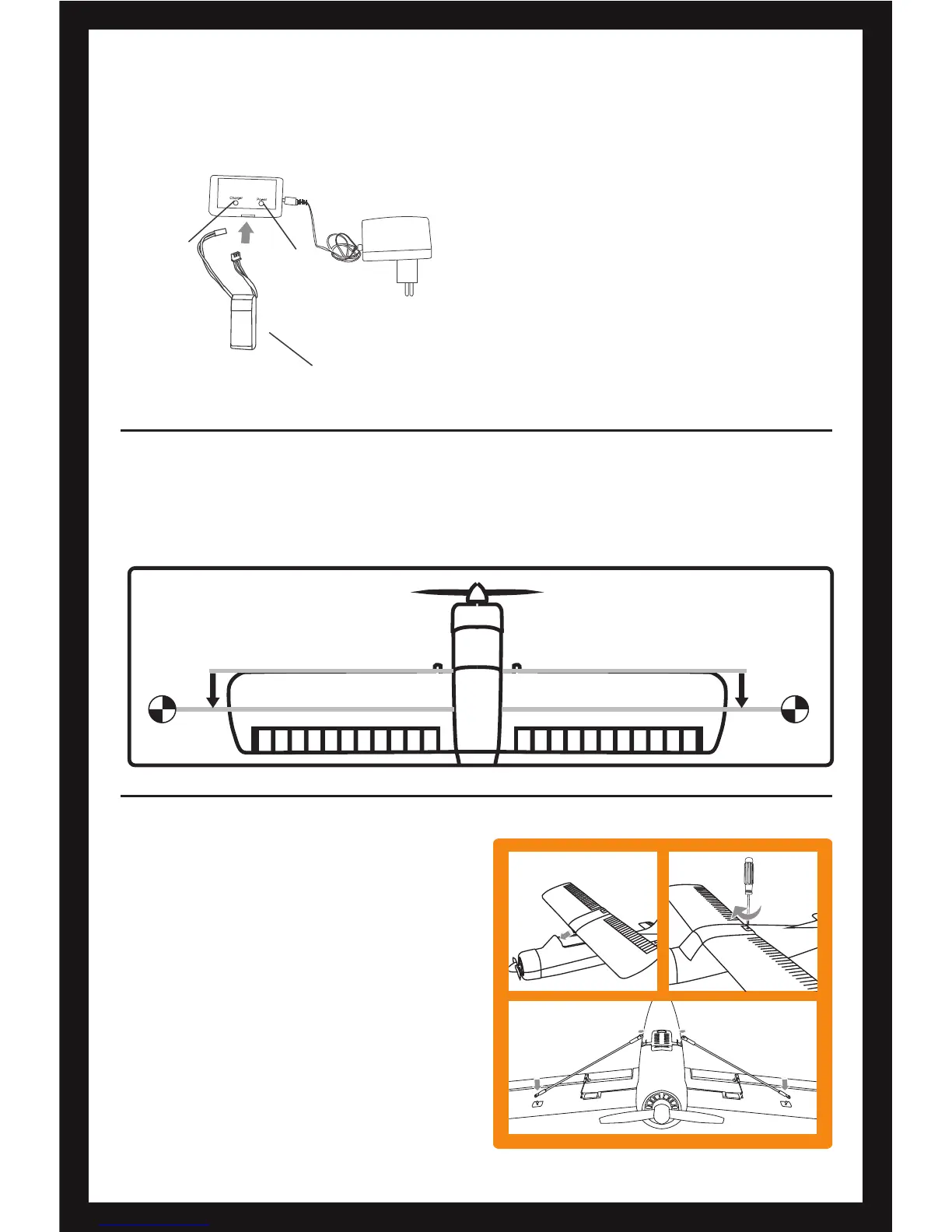 The central position of the plane at the leading edge of the wing back about 28mm, battery