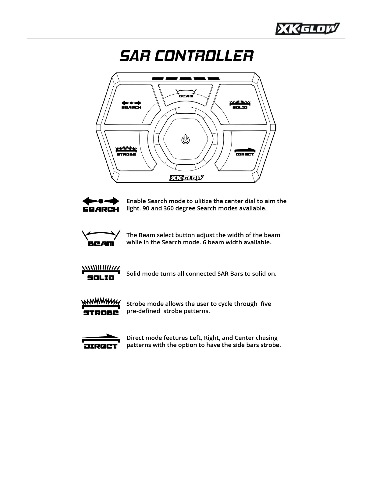 To tu r n t he l i g ht s ON/OFF, click the center dial. The green indicator LEDs at the top of the SAR Controller will illuminate.