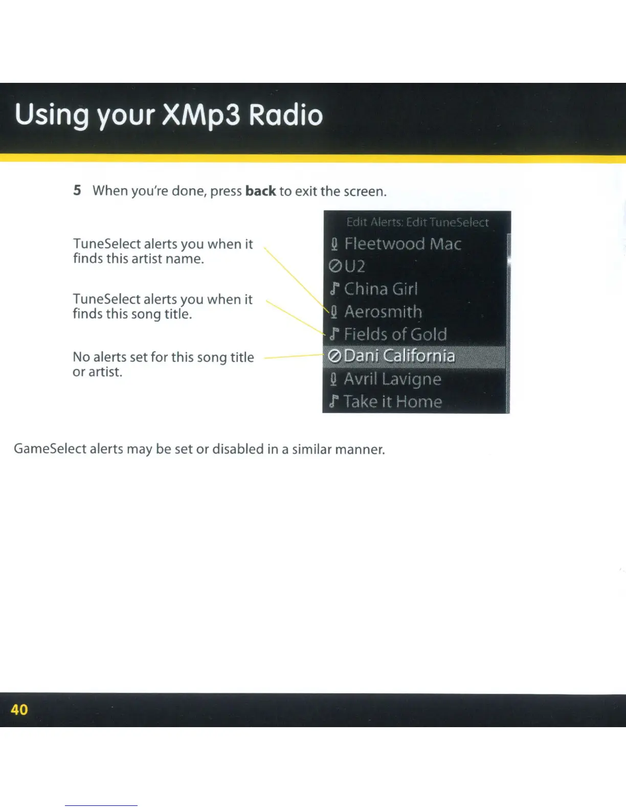 GameSelect alerts may be set