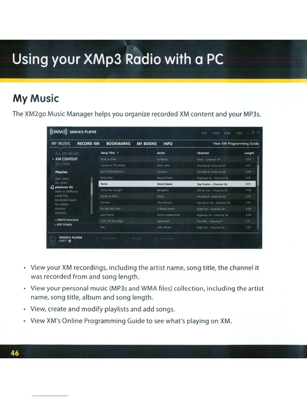 XM2go Music Manager helps you organize recorded