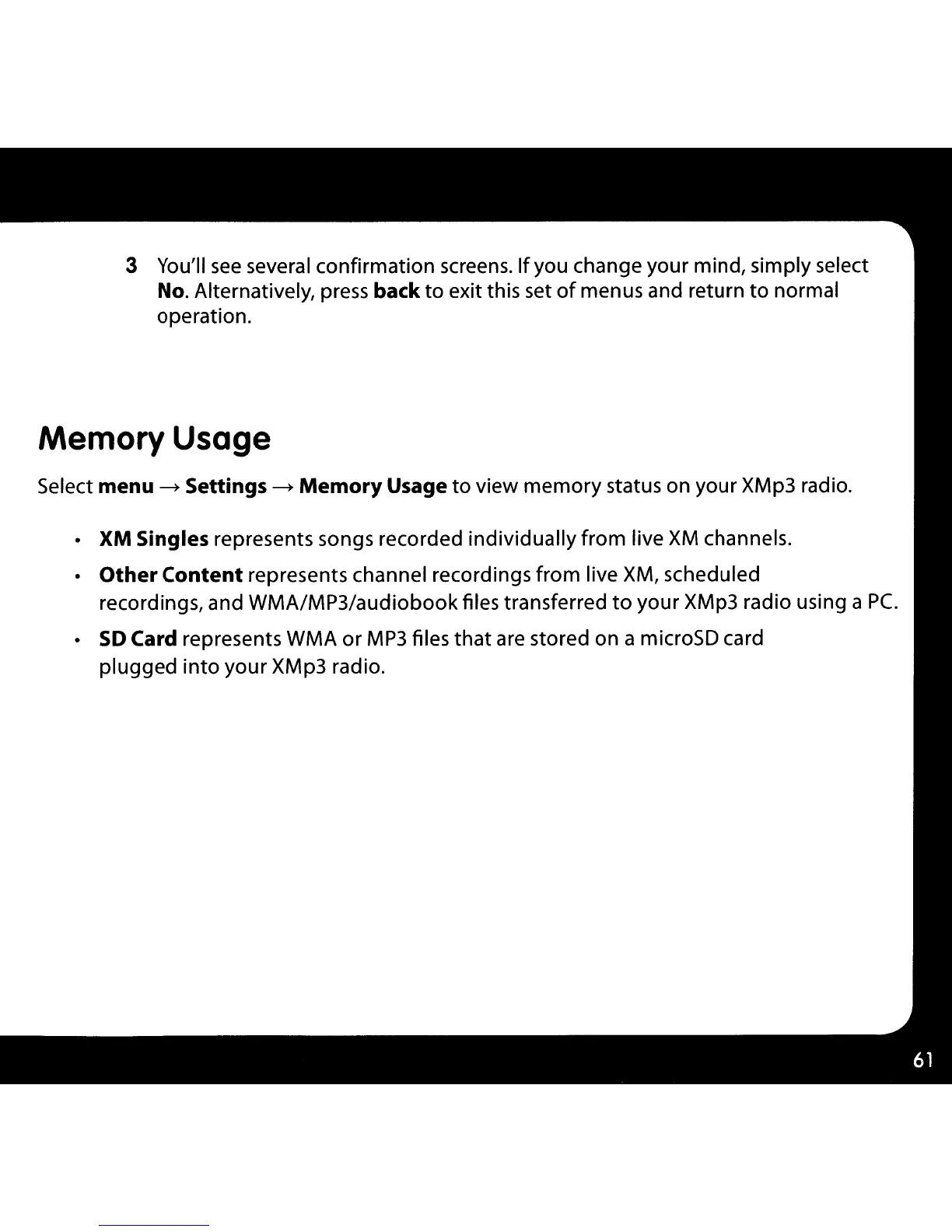 view memory status on your XMp3 radio.