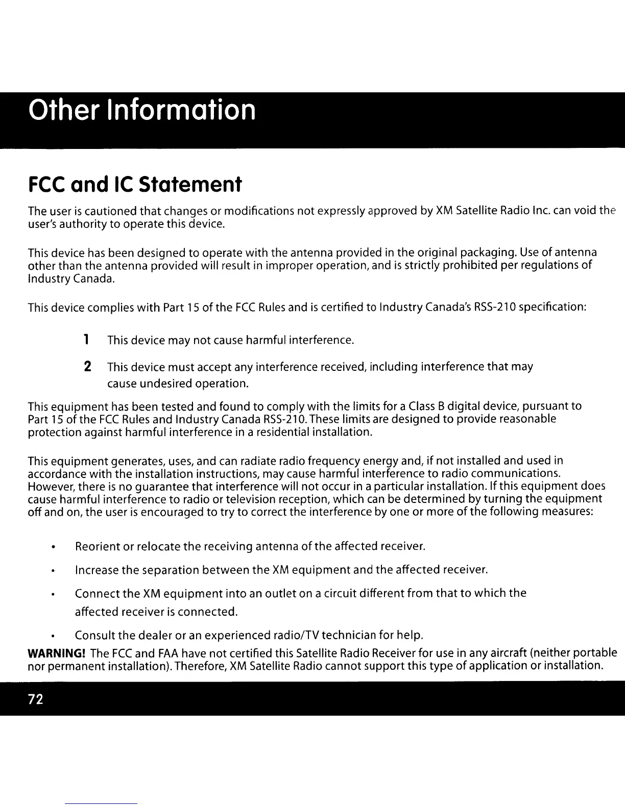 certified this Satellite Radio Receiver for use in any aircraft (neither portable