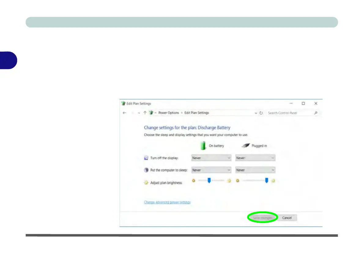 2. Create a power plan for discharging the battery and set all the options to Never.