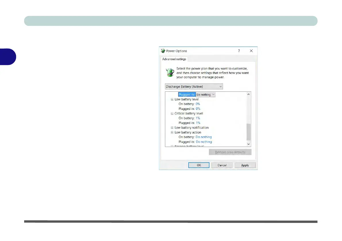 • Critical battery action (Plugged in) = Do Nothing