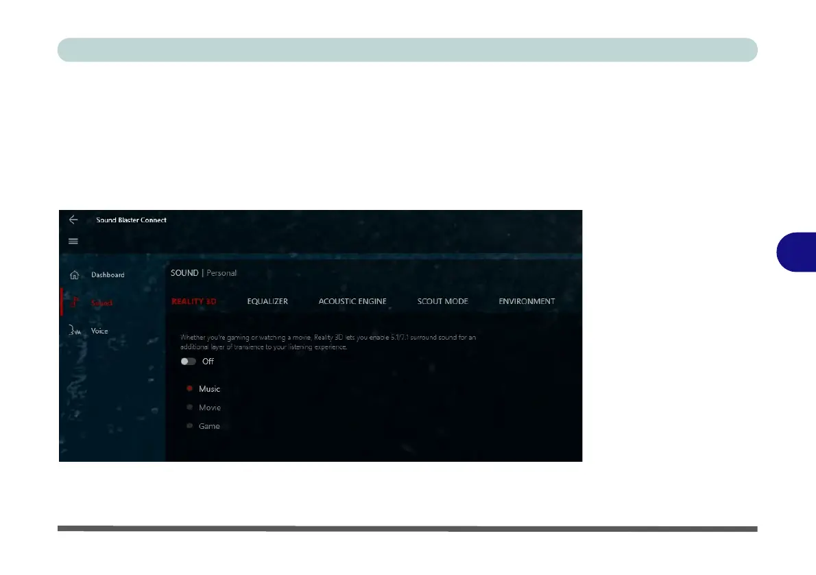 The Sound page allows you to adjust the Personal settings for Reality 3D, Equal-