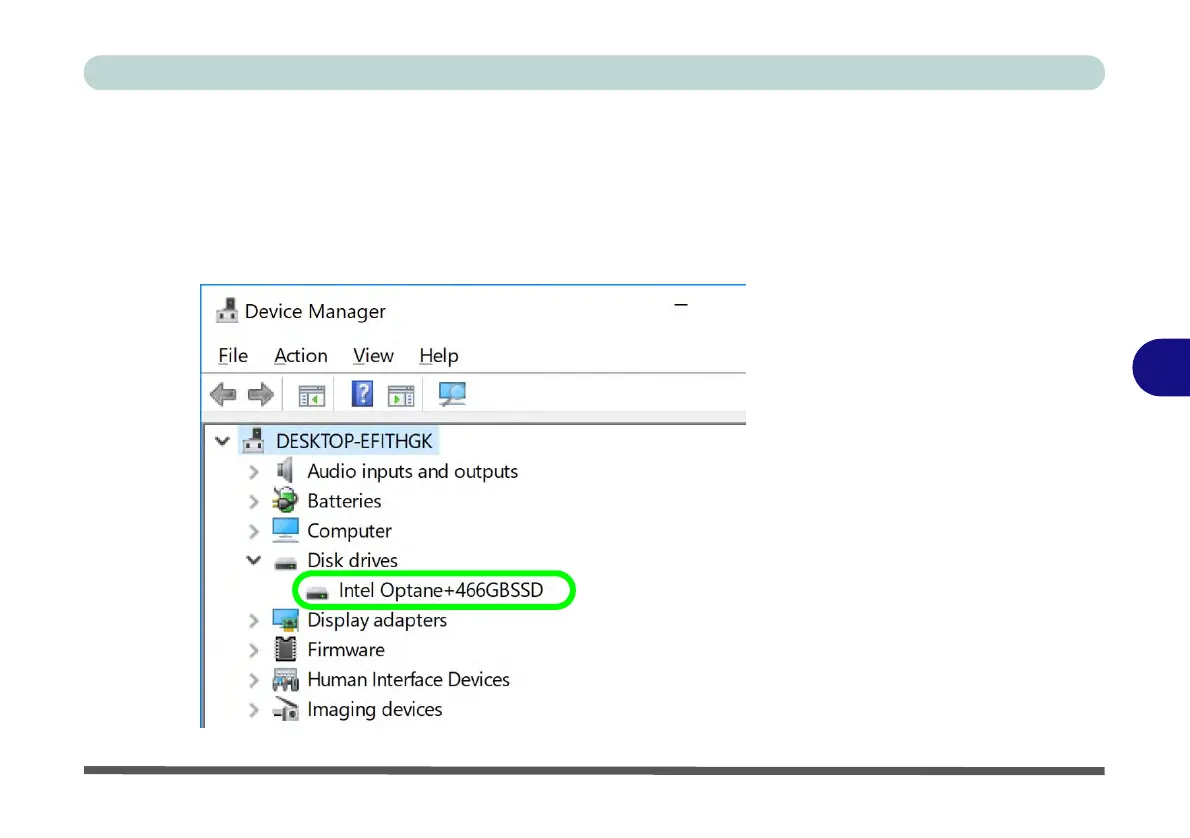 8. Click Disk drives to check that the drive should read Intel Optane ******.