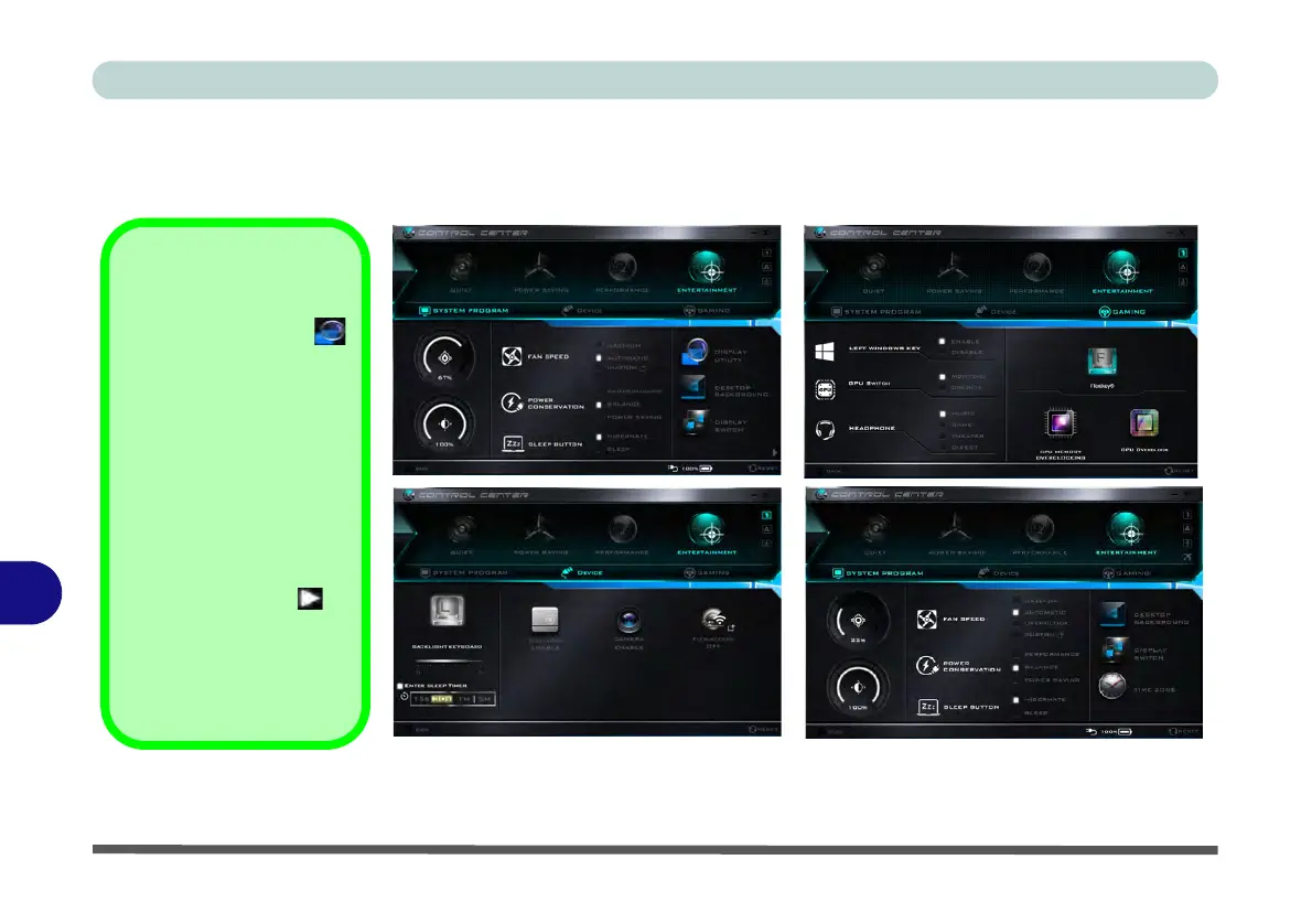 The Control Center contains 3 menu headings (System Program, Device and Gaming) under the Power