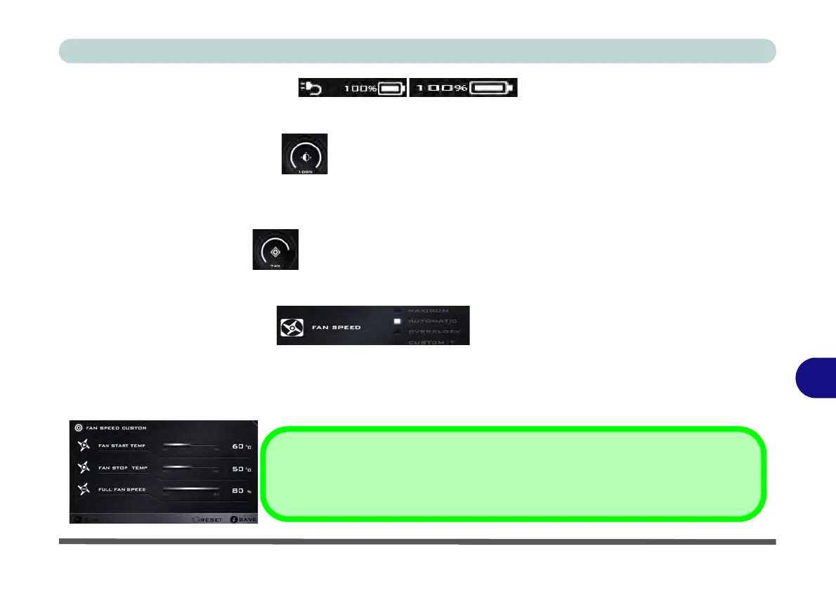 You can set the fan speed to Maximum (full power), Automatic, Custom or Overclock from this menu item.