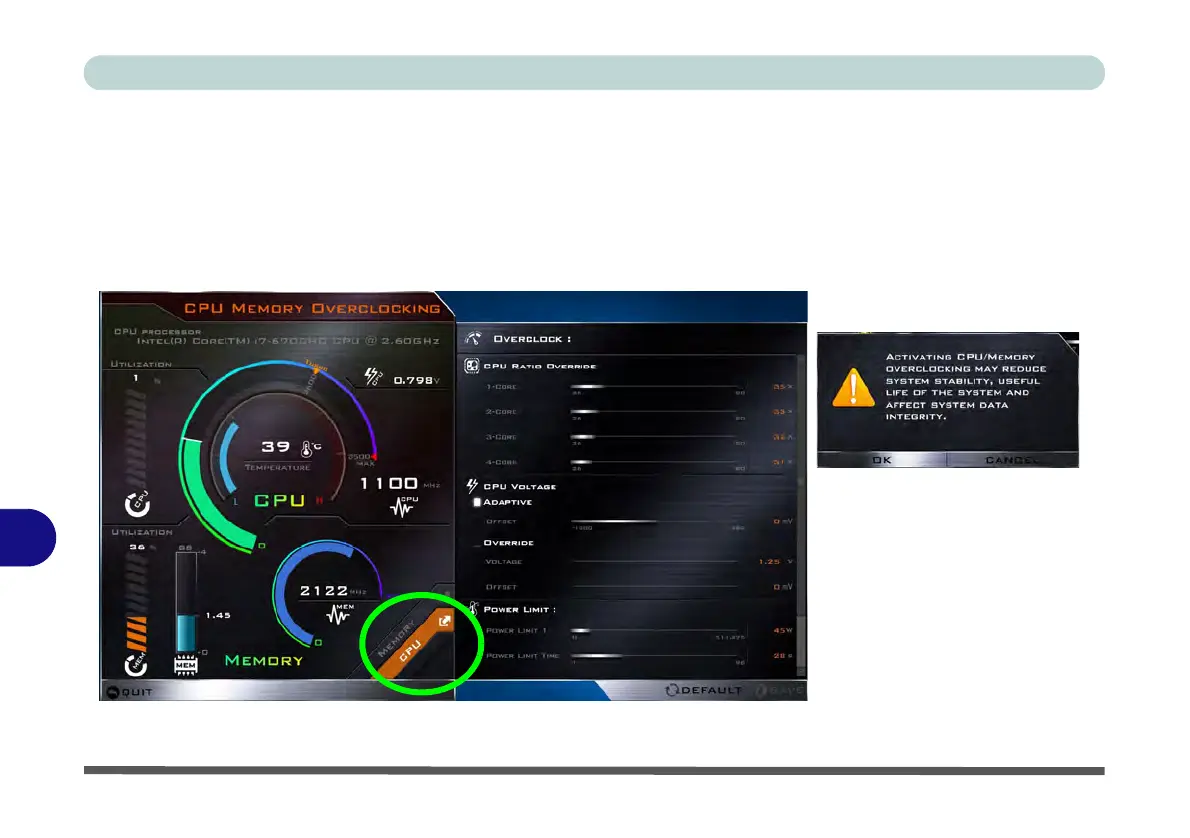1. Click the CPU tab at the bottom right of the screen and the CPU overclocking tab will pop out to allow adjust-