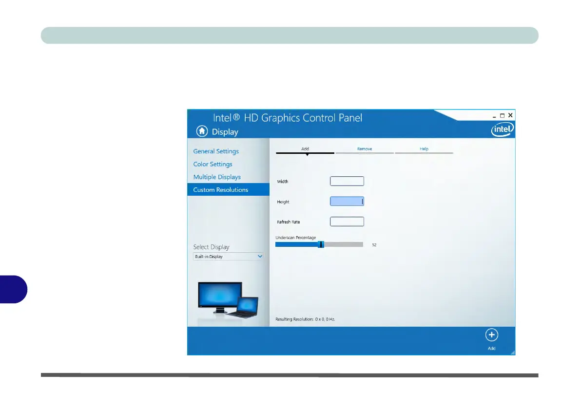 The Custom Resolutions sub-menu allows you to adjust the display (or any at-