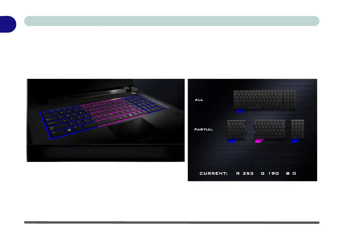 The bottom left section of the application allows you to preview setting changes made to colors on the keyboard.