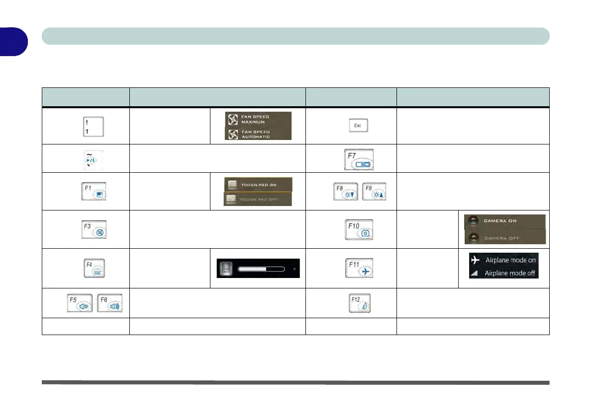 Table 1 - 5 - Function Keys & Visual Indicators