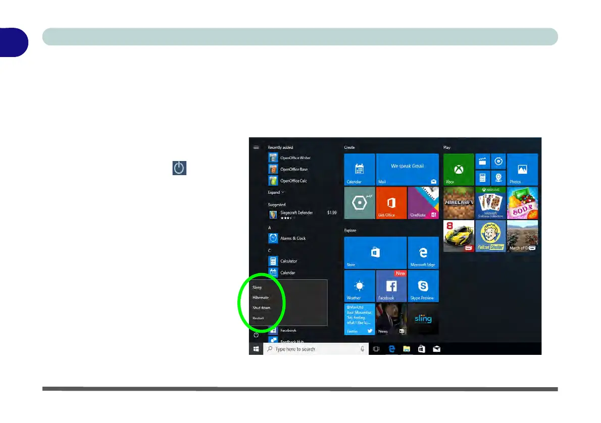 the menu - see page 1 - 39). To fully control all the power options (including Hibernate mode) go to the Power