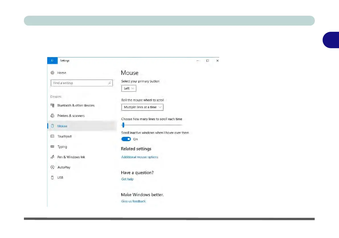 You can select the primary mouse button and scrolling options and access Mouse