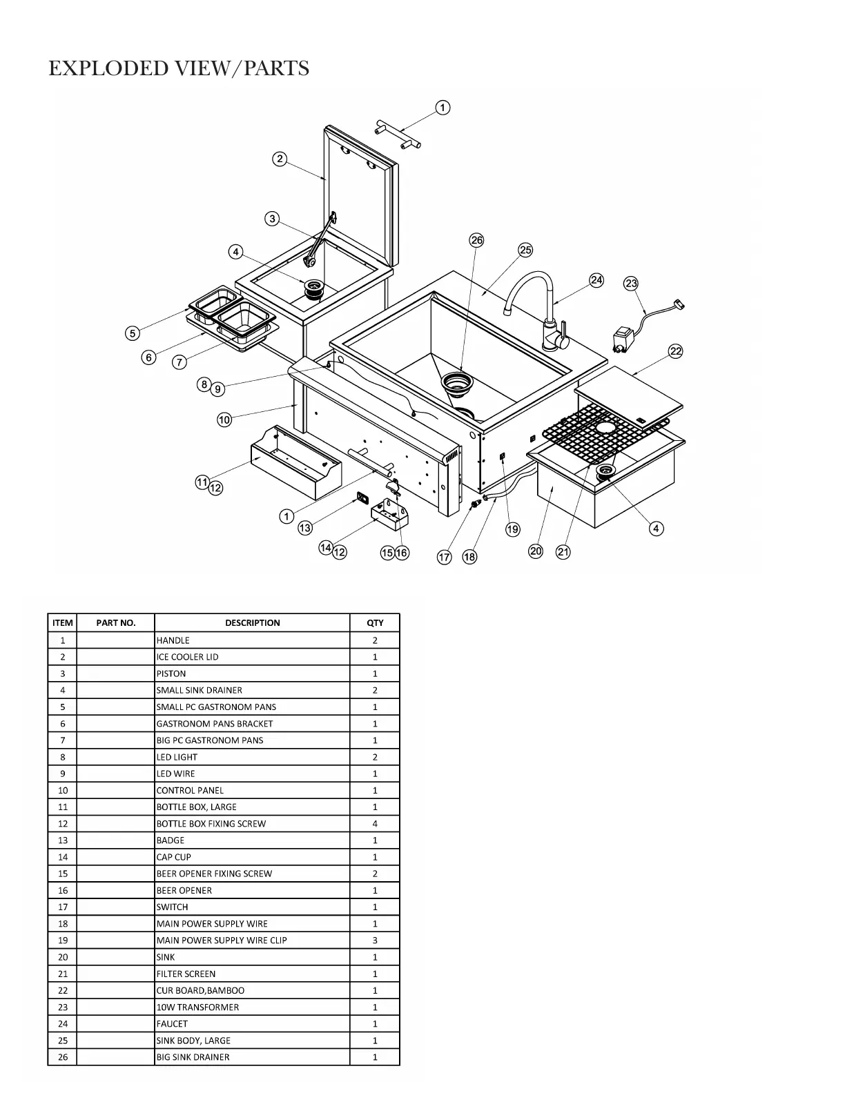 Xo BAR PRO - Parts and Technical Schematics; Exploded View and Parts List