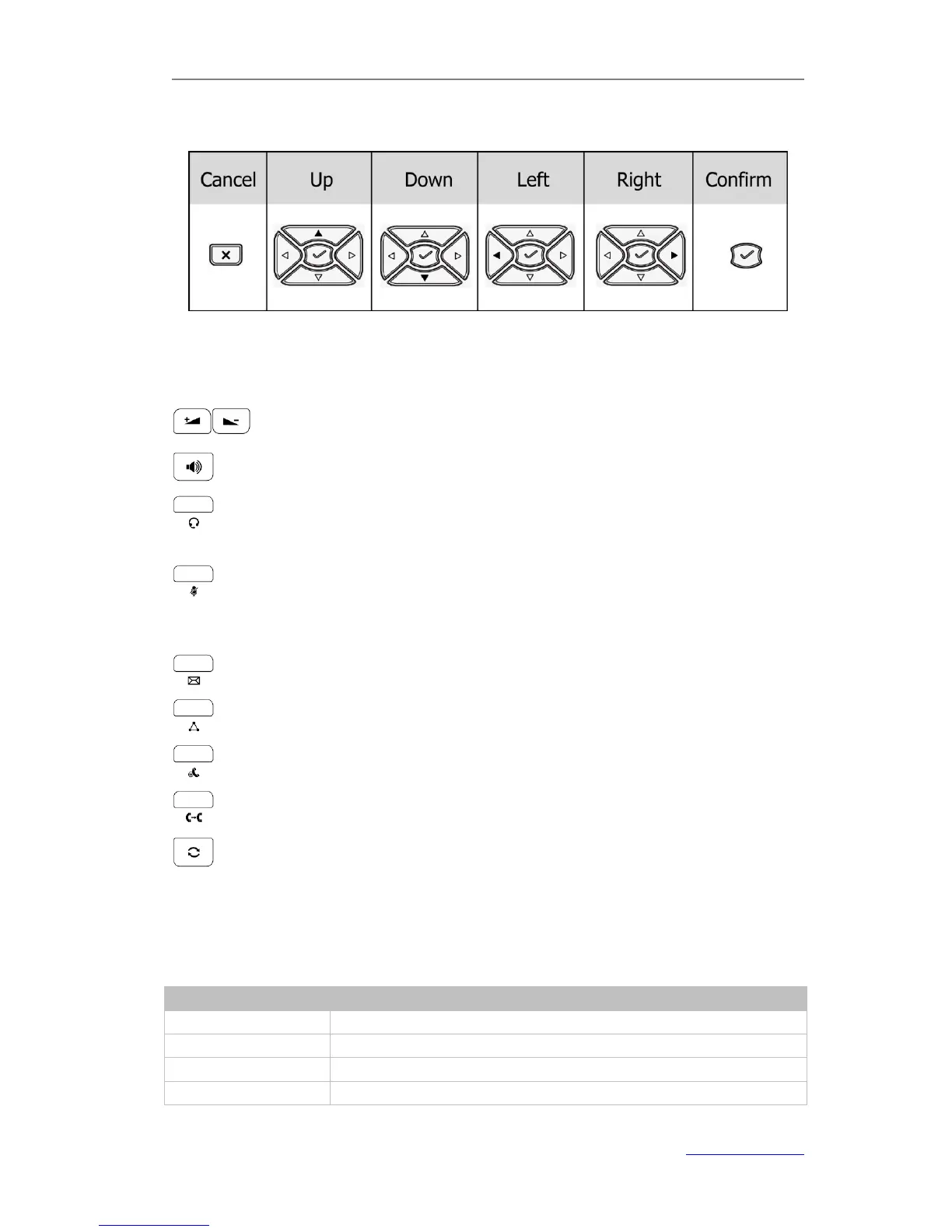 : Adjust the volume of the handset, headset, speaker and ring tone;
