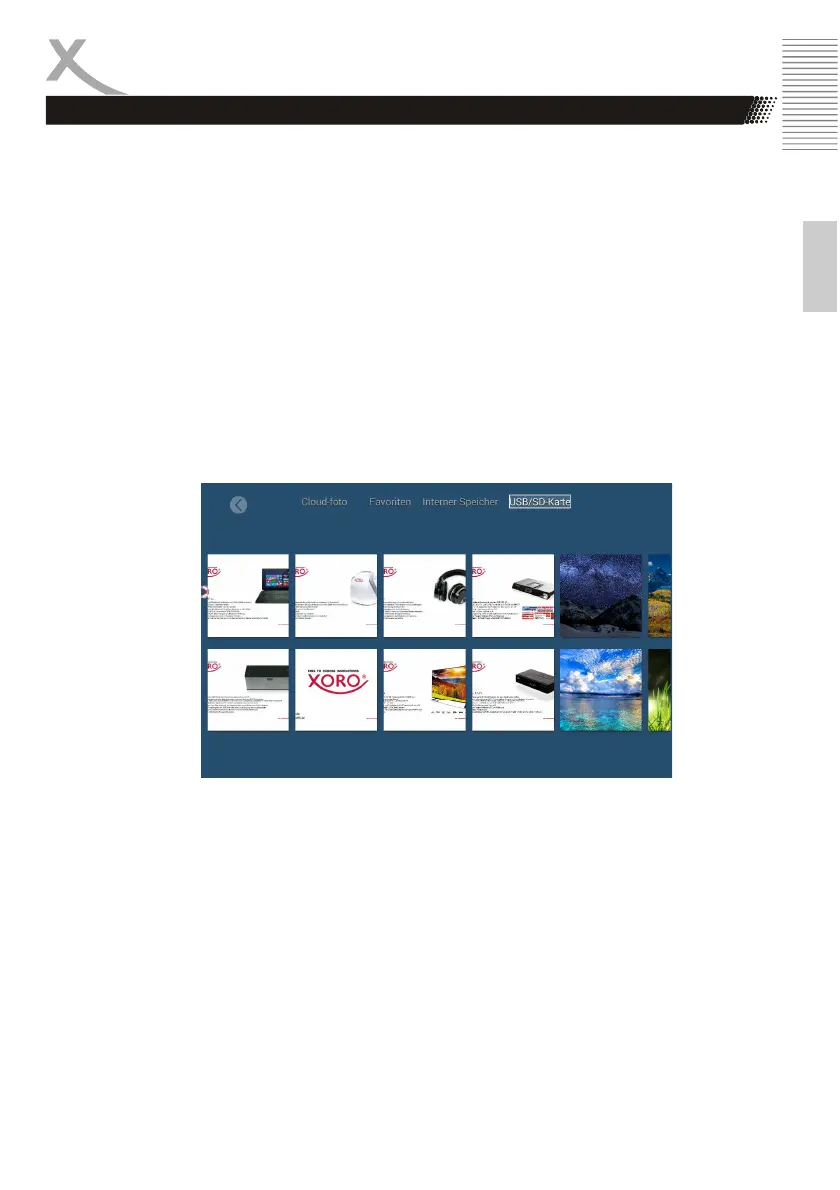 - Mit USB/SD-Karte können Sie auf einem USB/SD-Speichermedium gespeicherte Bilder ansehen.