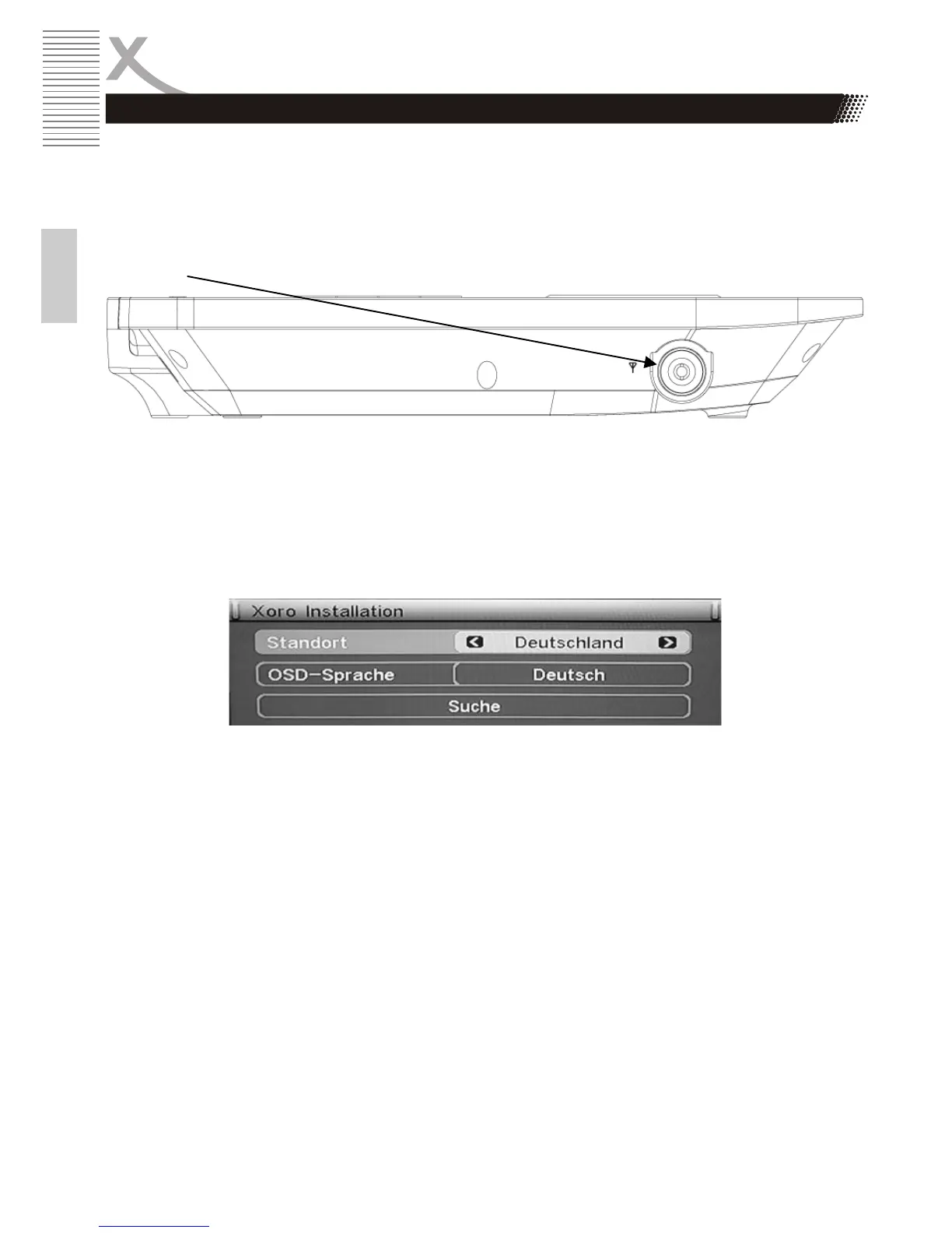 2. Falls "Xoro Installation" nicht nach dem ersten Anschalten des HSD 7799 im DVB-T Modus