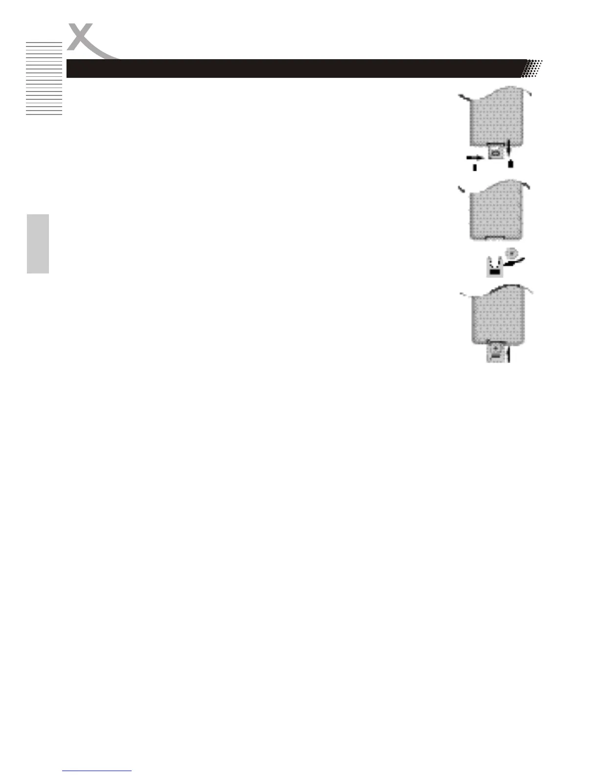 x Insert the battery into the receptacle and insert the receptacle into the