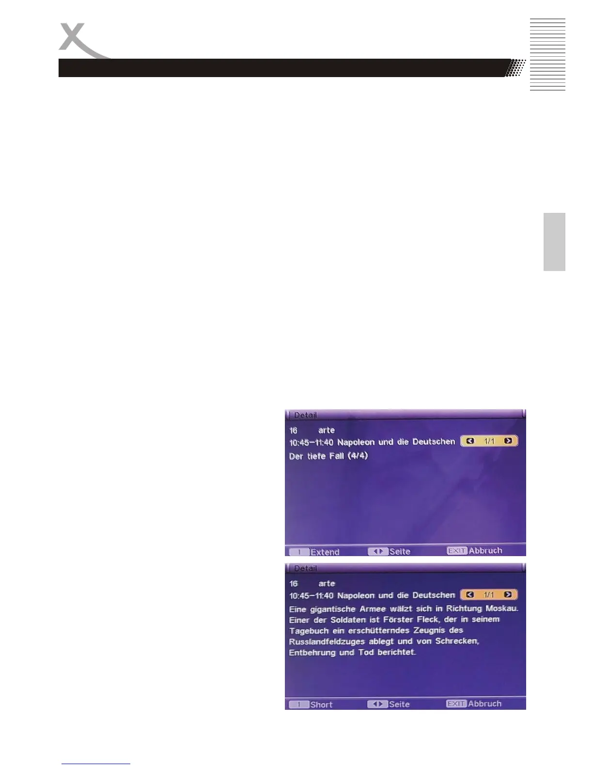 The detailed view of the EPG information (with the 3 button enabled) shows an altered appearance
