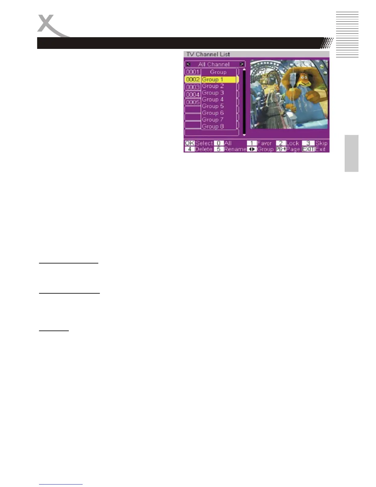 x /(Group)button: These two buttons function only when Favorite channels are already