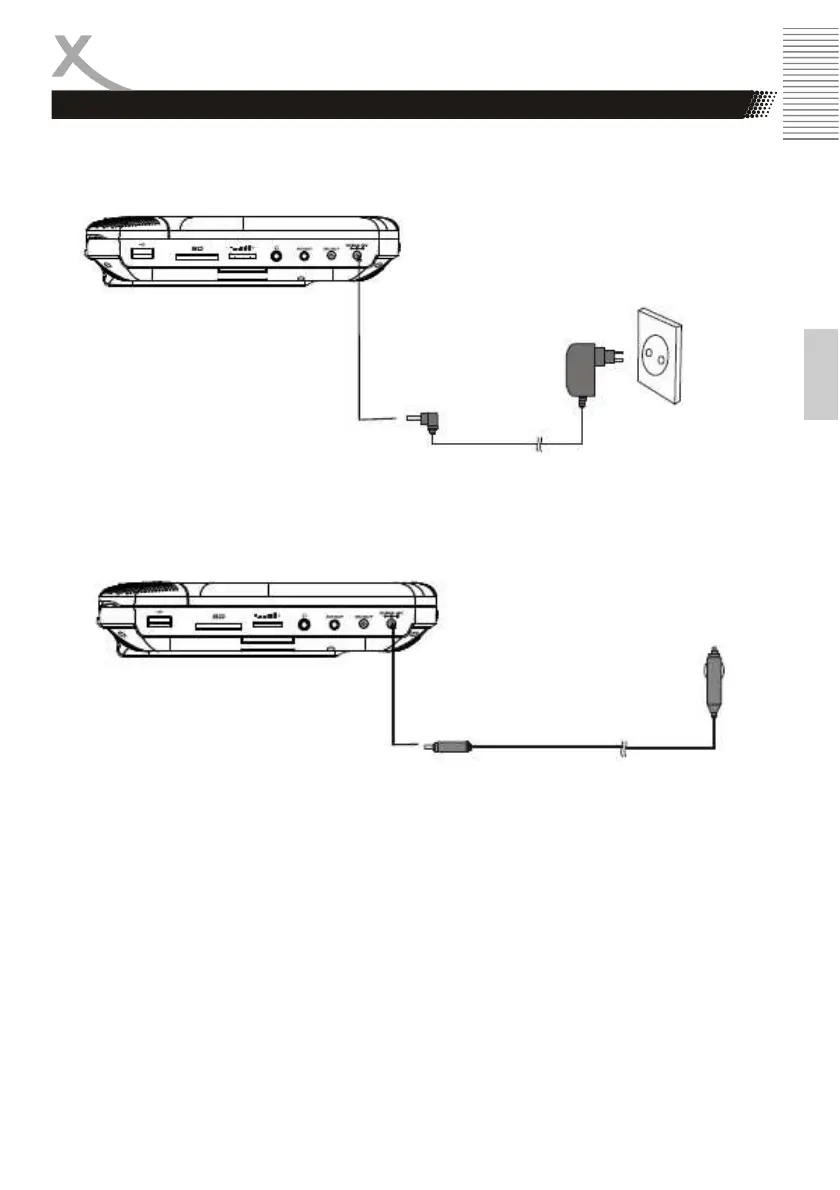 Plug one end of the cigarette lighter adaptor into the DC IN 12V jack on the unit, plug the