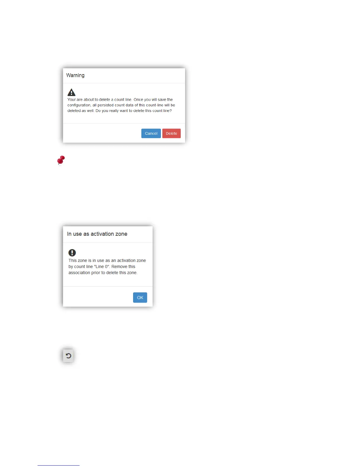When trying to delete a count zone which is in use as an activation or deactivation zone (more